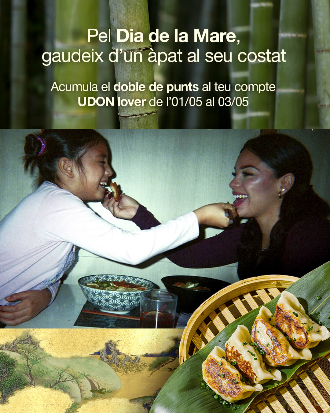 Perquè compartir ramen amb la teva mare, o amb qui vulguis, sempre suma. I aquesta vegada, els punts també. Des de divendres 1 i fins diumenge 3 de maig, els tiquets superiors a 35 € → doble de punts per als UDON Lovers. I si encara no ho ets, registra’t i aprofita els 2,5 € de descompte en la teva primera compra.