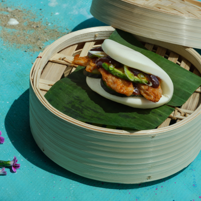 Y la tercera novedad de nuestra carta para los próximos meses es un bun frío y vegano. Es el Veggie Bun, pan bao cocinado al vapor con Heüra (proteína vegetal), pepino, aguacate y salsa hoisin (típica de la cocina china y con la pasta de soja fermentada como base) vegana.