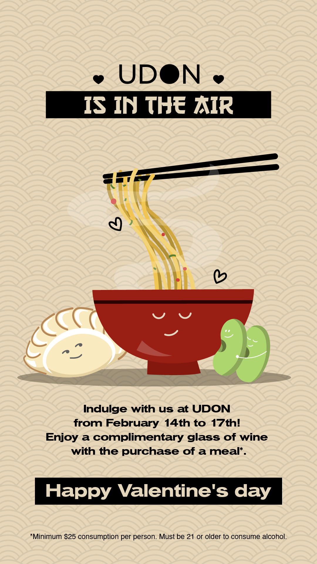 *1 glass of wine per customer with purchase. From February 14th to 17th.